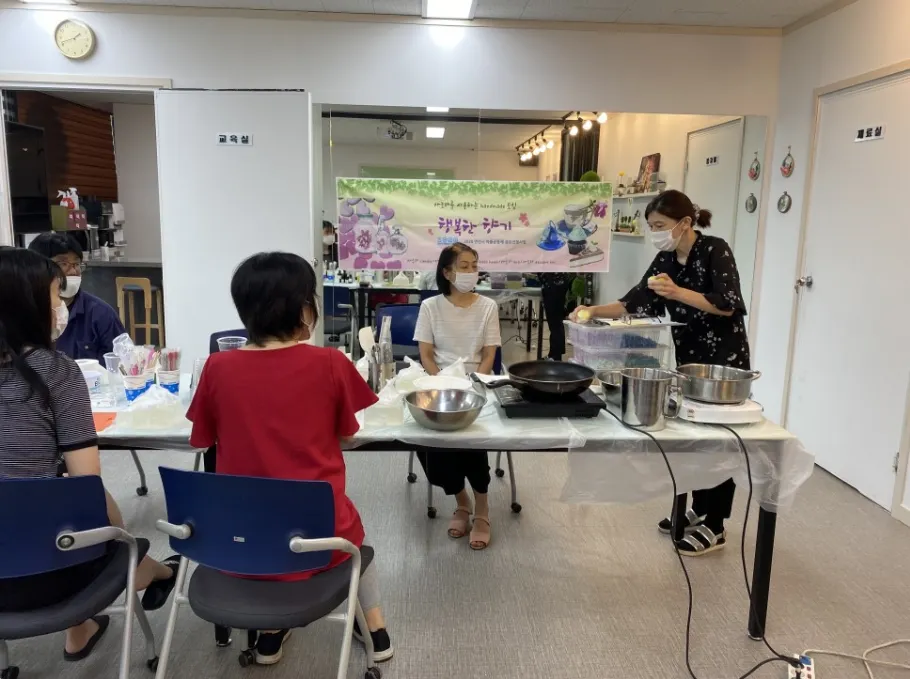1. 한국사람들이 정말 좋아하지만 막상 만들려고 하면 쉽지가 않은 다저트들 같이 만들어 먹고 나누고 아이들과 함게 만들면서 친해지고 자주 만나고 더한 정말 좋아하지만 실제로 하기 힘든 아로마 테라피를 통해서 불면증이나 스트레스를 해결하고 좋아하는 사람들에게 선물 할 수 있는 방향제도 같이 만들어서 선물 하면서 이웃들과 사이좋게 지낼 것임