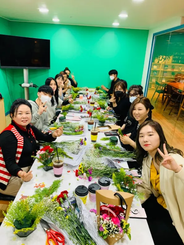 4. 5월 8일 어버일날을 맞이하여 상인회 회원 및 회원 가족들과 근처 주민분들 대상으로 카네이션 꽃바구니 만들기 행사를 진행하였음