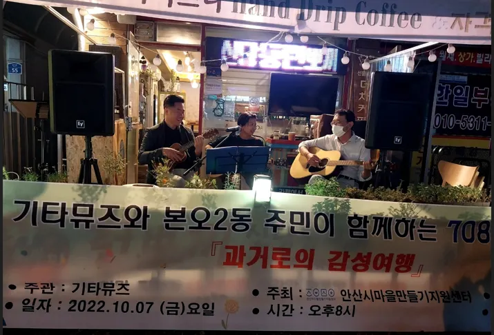 공동체 활동을 경험하는 계기를 마련하고자 우리 마을은 “과거로의 감성 여행”사업을 통해 지역 주민들의 음악적 감성을 일깨우고 애향심을 고취 시키고자 함